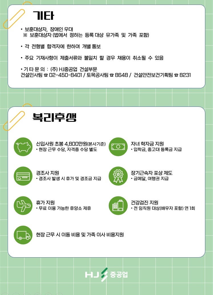 HJ중공업 건설부문 2024 정규직 채용공고 토목 및 안전 분야