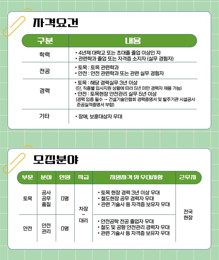 건설인사팀 ☎ 02-450-8401 / 토목공사팀 ☎ 8648 / 건설안전보건기획팀 ☎ 8231