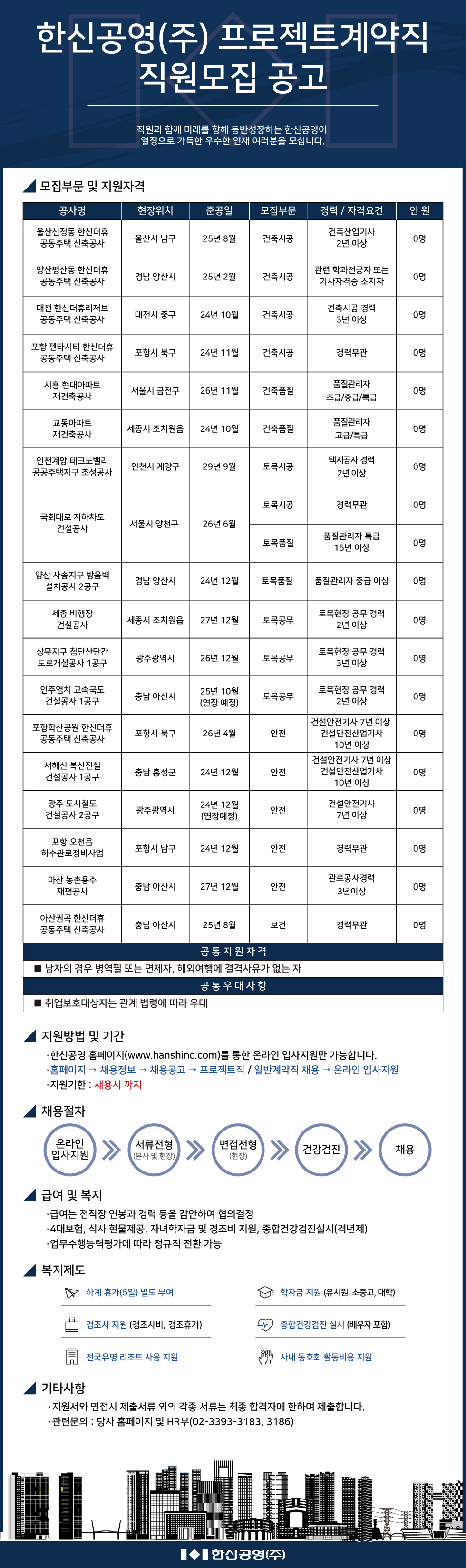 한신공영(주) 프로젝트계약직 직원모집 공고