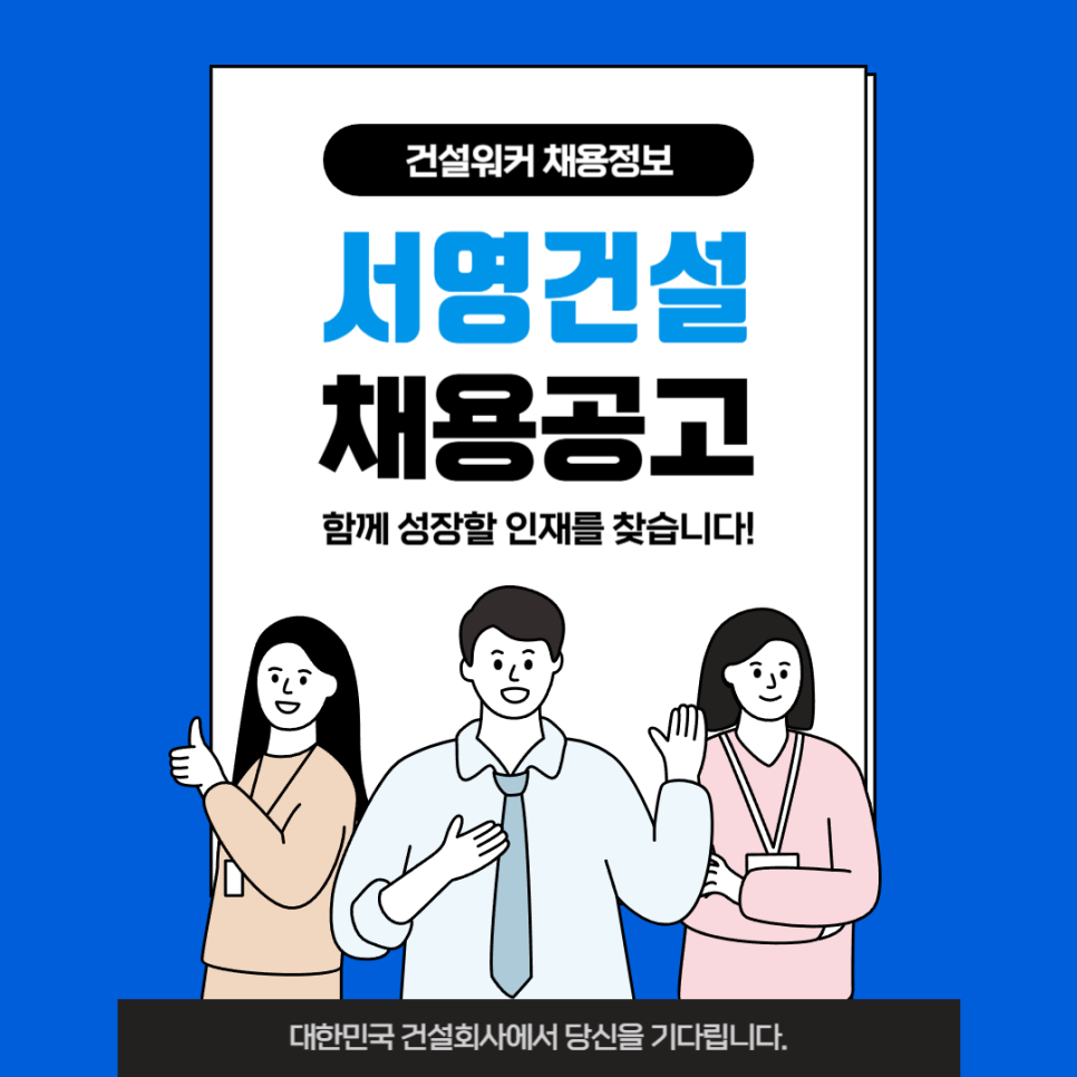 [서영건설(주)] 서산시 발주 75억 신축공사 현장 인원 모집 (마감일 : 12/16) - 건설취업 건설워커