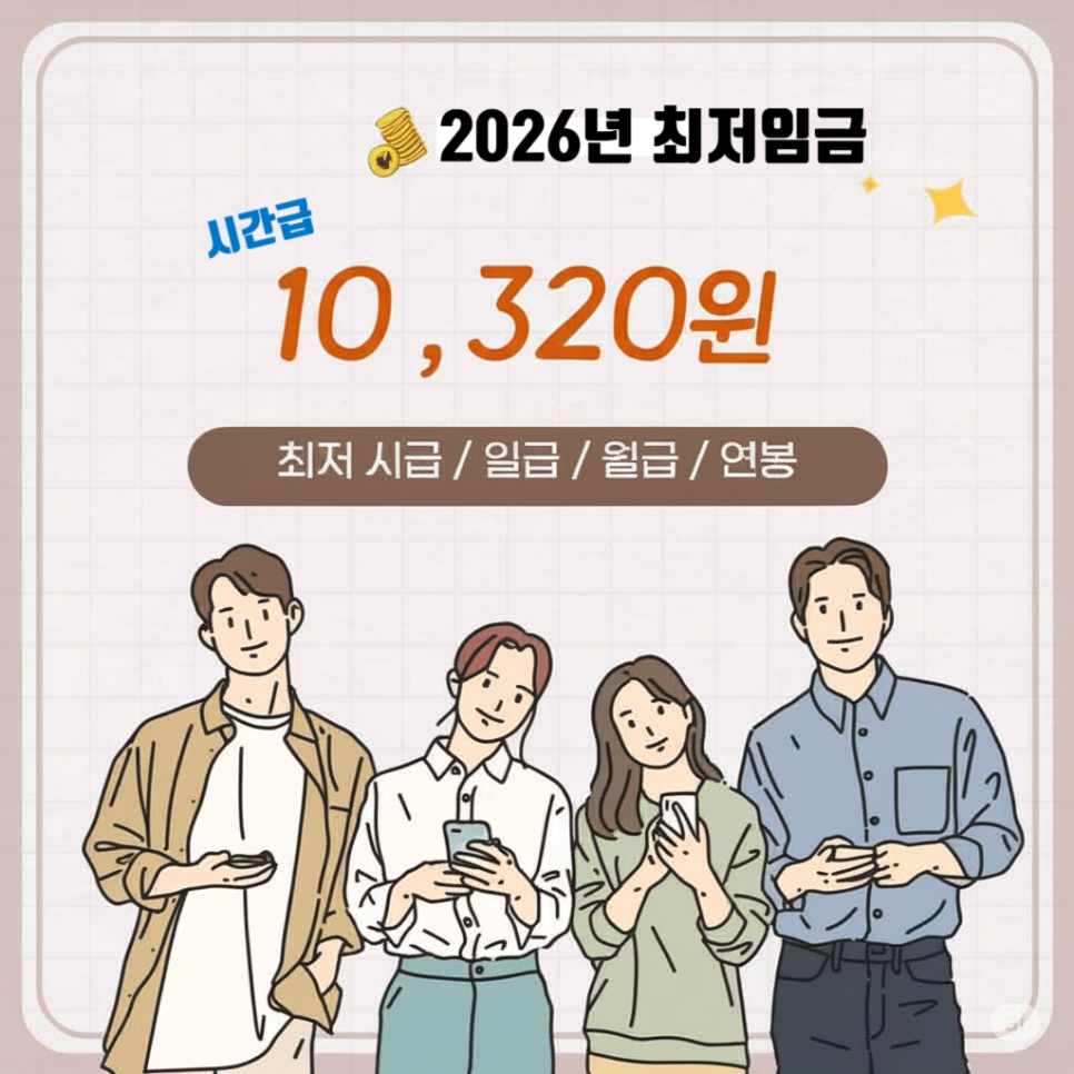 💰 2026년 최저시급 10,320원…2025년(10,030원) 대비 2.9% 인상, 월 환산 2,156,880원(209시간 기준) 【...