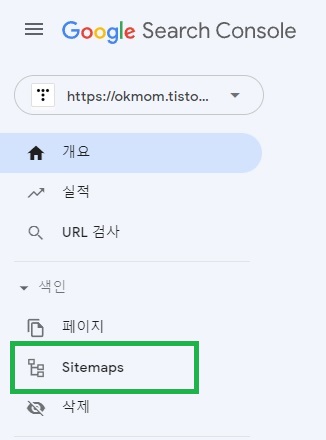 3) 왼쪽 메뉴바에서 [Sitemaps]을 클릭 (아래 사진)