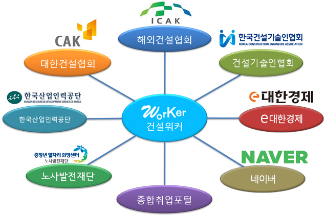 업계 최대 규모의 정보유통채널도 건설워커의 차별점이다. 네이버, 한국건설기술인협회-건설워크넷, 대한건설협회, 해외건설협회, 한국산업인력공단, 한경리크루트, 경총, KT, 종합취업포털, 취업카페, 교육기관, 언론사 등에 건설일자리 정보를 독점 제공하고 있다.